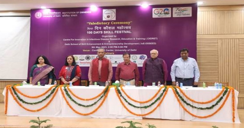 नई दिल्ली : कौशल विकास और उद्यमिता मंत्रालय (एमएसडीई) के सचिव अतुल कुमार तिवारी ने मंगलवार को इस अवसर पर मुख्य अतिथि के रूप में दिल्ली विश्वविद्यालय में १०० दिवसीय कौशल महोत्सव के समापन समारोह को संबोधित किया। शिक्षा और सशक्तिकरण के १०० गौरवशाली वर्षों को चिह्नित करने के लिए अपना शताब्दी वर्ष मनाते हुए, दिल्ली विश्वविद्यालय के दो संस्थान, संक्रामक रोग, अनुसंधान, शिक्षा और प्रशिक्षण में नवाचार केंद्र (सीआईआईडीआरईटी) और दिल्ली स्कूल ऑफ स्किल एनहांसमेंट एंड एंटरप्रेन्योरशिप डेवलपमेंट (डीएसएसईईडी) एक साथ आए। '१०० दिवसीय कौशल महोत्सव' के समापन समारोह का जश्न मनाएं। देश भर के ९० विभिन्न संस्थानों और पाठ्यक्रमों के ४०० से अधिक प्रतिभागियों को प्रशिक्षित और उन्नत किया गया है।